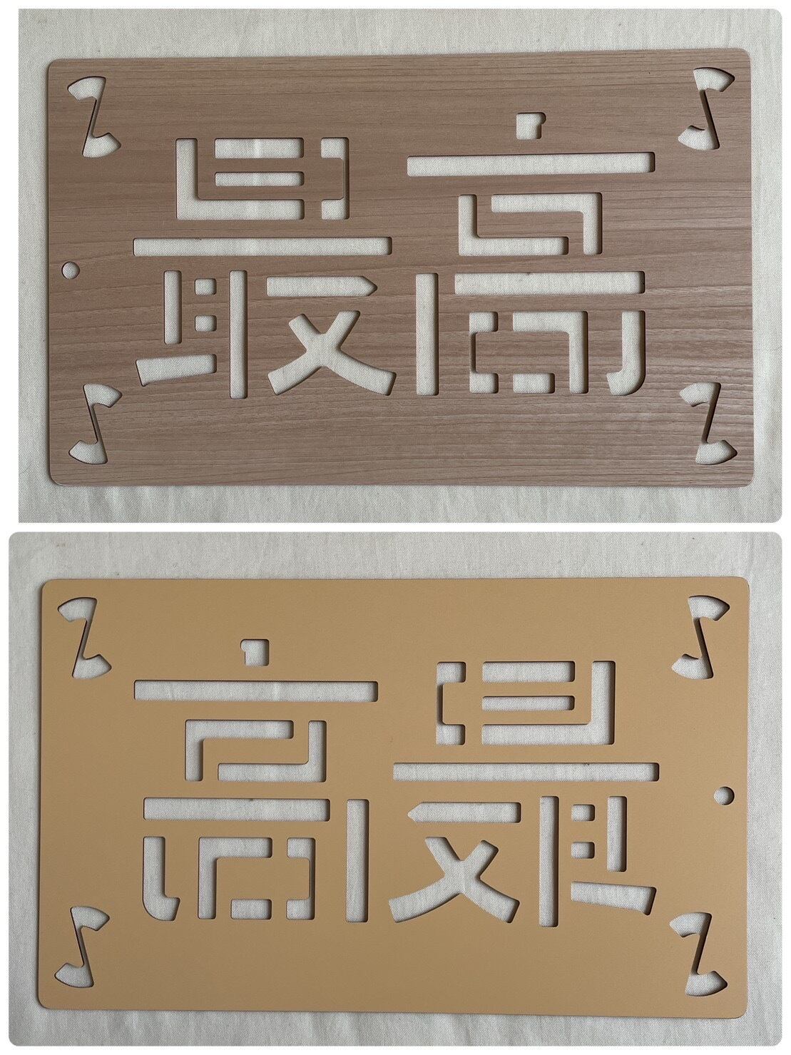文字抜き、足取り付け部分はお客様自身で面取りして仕上げてからお使いくださいませ。